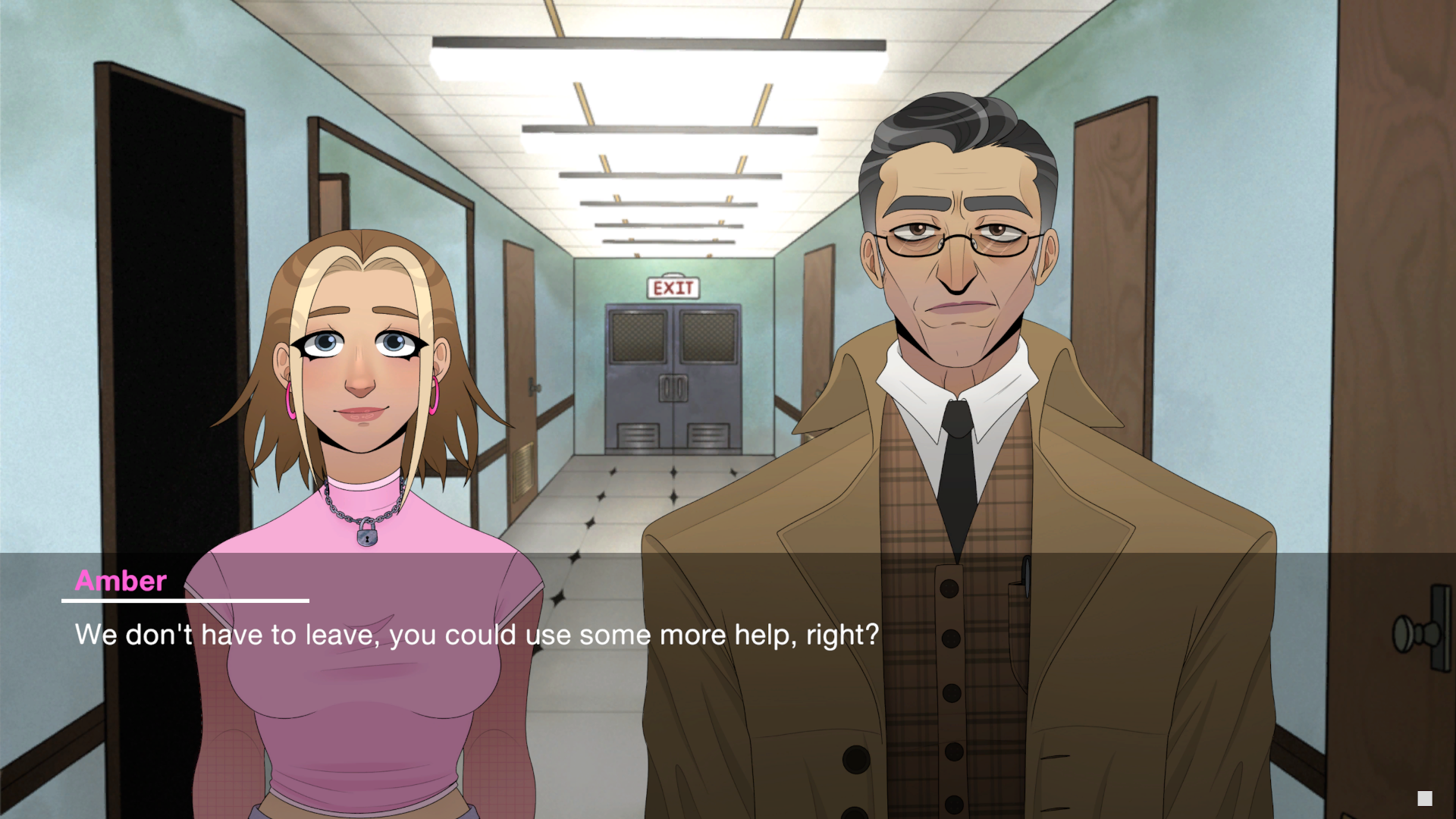 As for the game, it involves a brother and sister, exploring an abandoned psychiatric hospital. For game mechanics we currently have the chat log, which is basically it right now. We plan to add a chapter select, better save functionality, more characters, animated scenes, interactive backgrounds, updated UI, and much more. We hope you enjoy this small snippet of what we plan to finish.